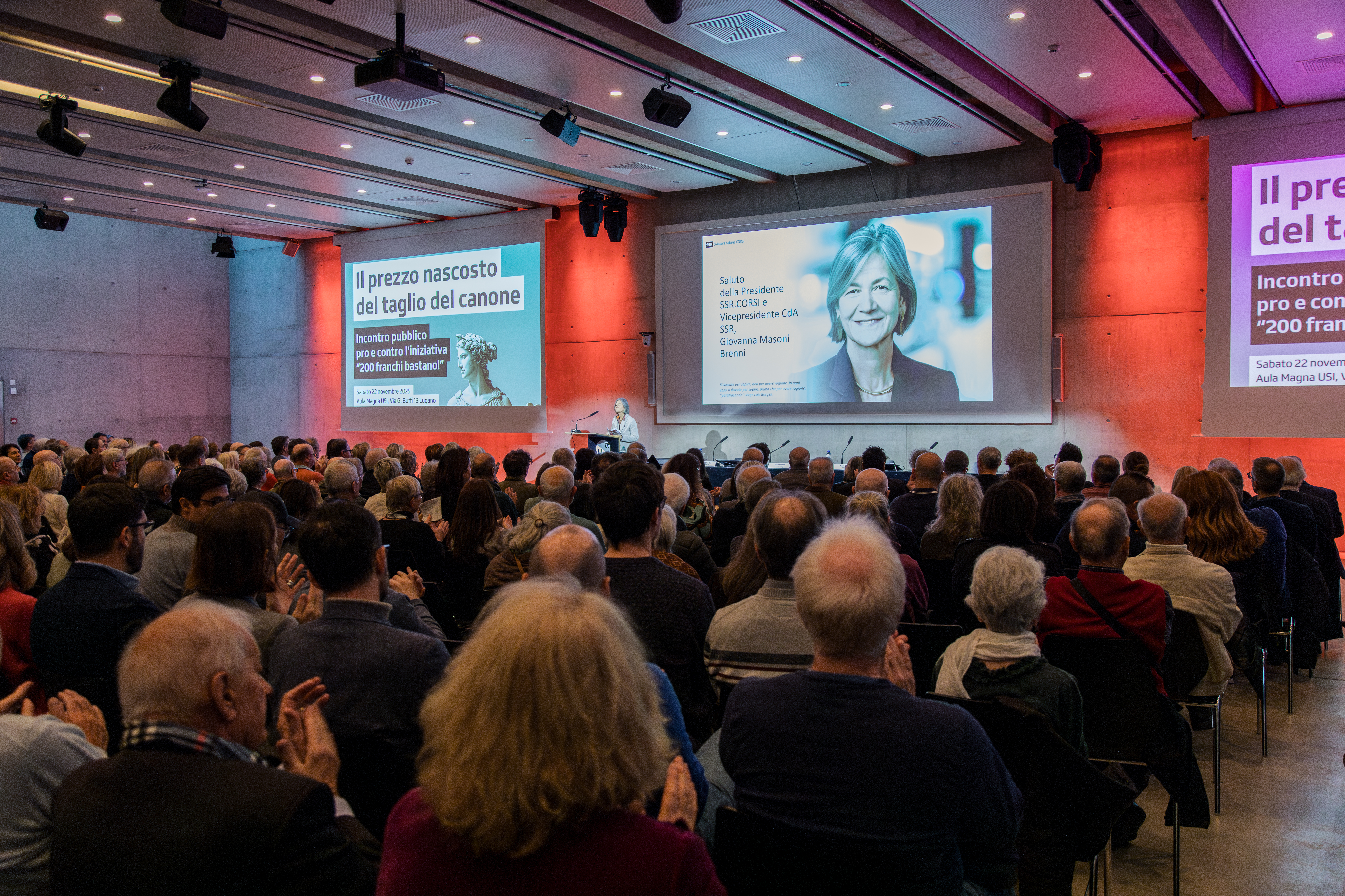 L'evento offrirà al pubblico l’occasione di ascoltare il Presidente SRG SSR, la Direttrice generale SSR e il Direttore RSI, che presenteranno i pericoli legati all'iniziativa «200 franchi bastano!» e le sfide per il futuro del servizio pubblico radiotelevisivo.